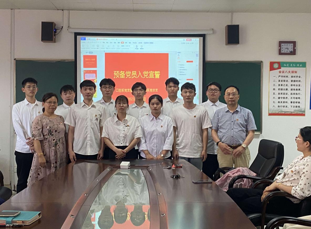 为加强预备党员的党性教育,提升预备党员对我党事业的认同感和责任感,以一名合格党员的标准严格要求自己,充分发挥党员的先锋模范作用,新葡的京集团8814vip202161日在实训楼1-605会议室共同举行了预备党员入党宣誓仪式。参本次仪式的有学院党委委员、副院长柯丰年同志,总支副书记邓小英,主任王木生,口腔学院罗志红书记,胡征主任,以及王晓伟老师叶燕平等老师