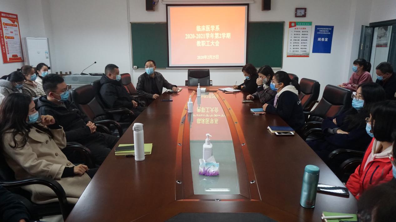 二、由王主任通报2021年临床医学系寒假期间进行的一些主要工作。寒假期间新葡的京校内精品开放课程一直在有条不紊地进行,学院附属医院建设也取得初步进展,临床医学专业1.5+1.5院校合作基本确定,临床医学专业申报工作等都在逐步推进。