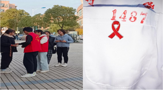 讲座前,新葡的京集团8814vip老师为每位参加讲座的同学佩戴红丝带徽章。