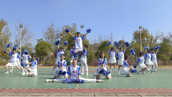 阳光普照,朝气蓬勃。他们脸上洋溢着笑容,动作整齐有力,用身姿诠释着青春的奔放,用热情编织青春的浪漫。花球在阳光下耀眼夺目,选手在赛场上熠熠生辉。队员们随着动感的节拍踢腿、转身、奔跑、跳跃,将各种动作与音乐完美结合,充分展现富有活力的运动之美。
