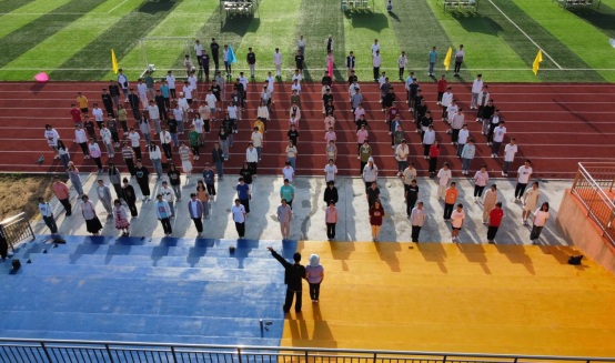 为弘扬中华传统优秀传统文化,提升大学生综合素质,4月14日,新葡的京集团8814vip红医卓越班全体师生在学校足球场集中练习八段锦。