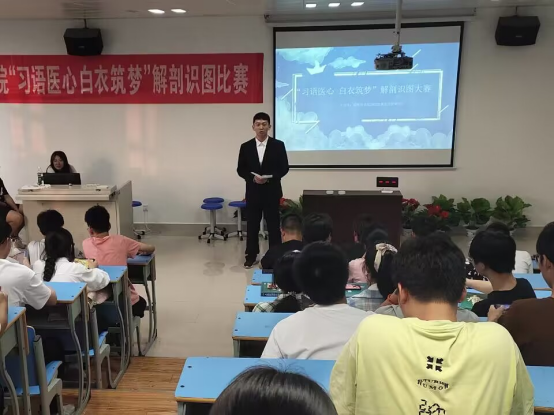 (学生通讯员 朱明名)为深入学习贯彻党的二十大精神,全面推进素质教育,提高青年学生综合能力,推动医学科普,发挥解剖图谱在医学基础教育和医学生综合素质培养中的作用。5月18日,学院在1号实训楼610教室举办了“习语医心 白衣筑梦”解剖识图大赛,来自新葡的京集团8814vip各个班级的40余名同学参加了比赛。