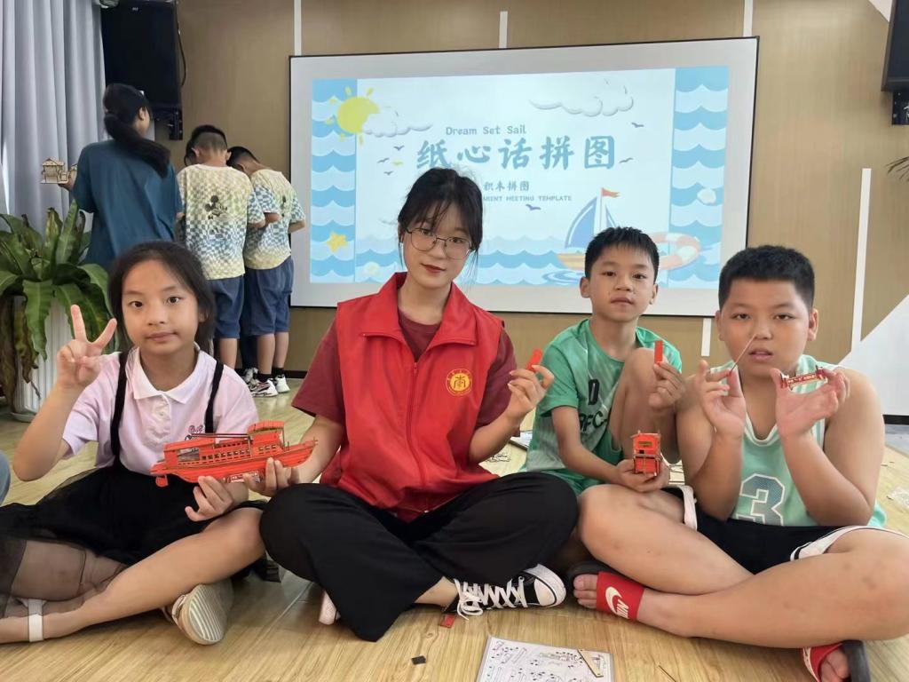 在推动爱国主义教育的道路上,创意与创新再次交织,以红色观影和纸心话拼图为载体的爱国教育活动顺利开展,深化了对国家历史和传统文化的认知,激发了孩子们的爱国热情。红色观影活动旨在通过观看优秀的红色影片,让孩子们亲身感受到革命先烈的英勇事迹和崇高精神。本次观影活动选取了经典影片《红色胸章》,通过剧情的展现和感人的表演,彰显了视死如归、宁死不屈的民族气节,让孩子们更加深入地了解了国家的发展历程和伟大的牺牲精神,并培养孩子们天下兴亡匹夫有责的爱国情怀。此外,纸心话拼图活动则以一种创新的方式,将传统的纸心话与拼图相结合,旨在通过参与者亲自拼好3D的红色拼图如红船,长城等,并写下自己的感想,增加对国家历史和文化的理解和认同感。孩子们踊跃参与,用心书写了一个个富含意义的纸心话,寄托了他们对祖国的美好祝福和热爱之情。