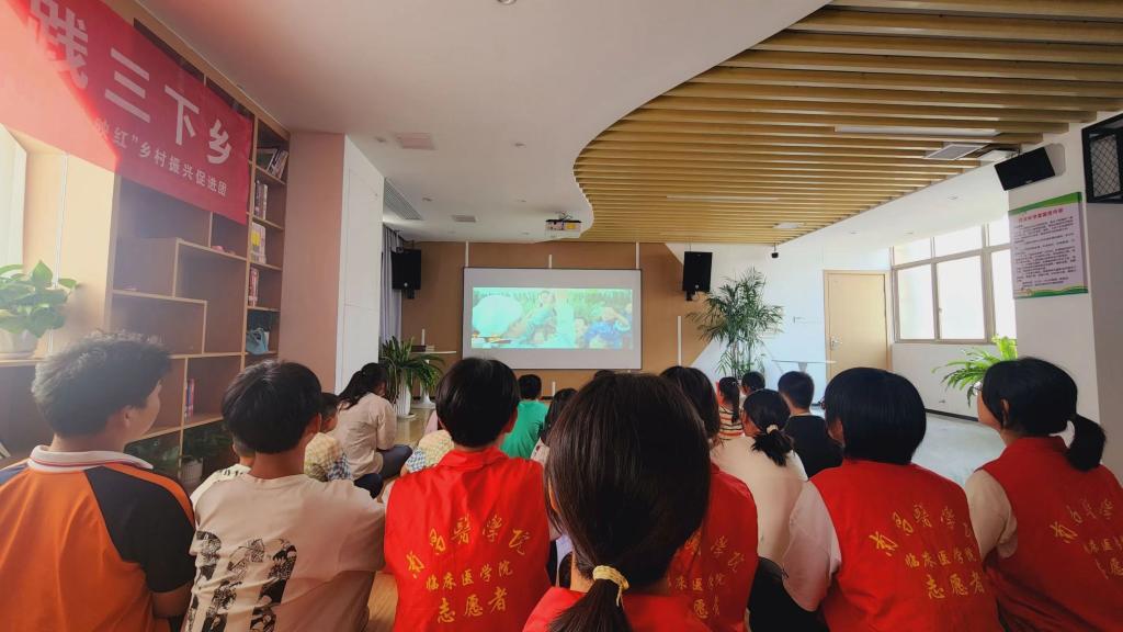 7月10日下午,乡村促进团成员组织当地儿童开展了爱国主义教育活动即观看红色影片和纸心话拼图。