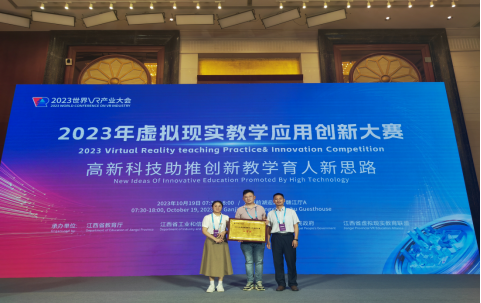 2023年10月19日,由江西省教育厅、江西省工业和信息化厅、南昌市人民政府主办以“高新科技助推创新教学育人新思路”主题的2023年虚拟现实教学应用创新大赛决赛在江西南昌前湖迎宾馆顺利举办。大赛分设技术创新和教学应用两个赛道,自大赛通知发布以来共有来自全国70多所高校 (外省11所,江西省59所)的256个团队报名,经过层层筛选最终有37个团队脱颖而出、入围决赛。决赛现场精彩纷呈,经过激烈角逐,新葡的京集团8814vip参赛王招珍、李孟阳、罗飞团队荣获教学应用赛道组一等奖。