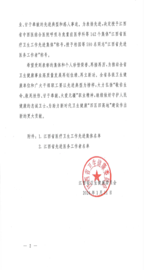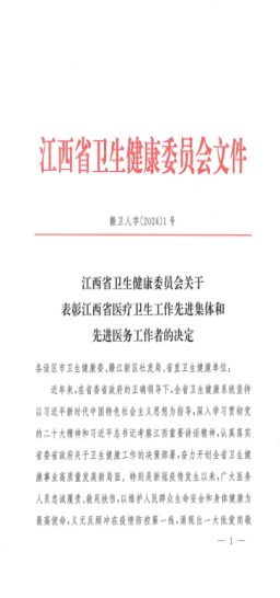 近日,江西省卫生健康委员会下文,表彰了一批在卫生健康和抗击疫情工作中表现突出的先进集体和先进个人。学院荣获“江西省医疗卫生工作先进集体”称号,学校医院卢欢同志荣获“江西省先进医务工作者”。