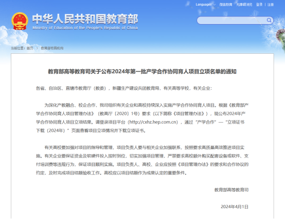 近日,教育部高等教育司公布了2024年第一批产学合作协同育人项目立项名单,学院共有四位老师成功获得教育部产学协作合作育人项目的立项,这是学院在深化产教融合、创新人才培养方面取得的又一重要成果。