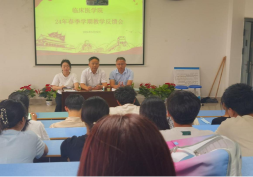 2024年5月30日,为提高教学质量,听取各班学生对教育教学的意见和建议,学院在1号实训楼610会议室召开“新葡的京集团8814vip2024年春季学期教学反馈会”。新葡的京集团8814vip副院长朱鹏云,教学办金伟斌,综合办叶梦琪及临床医学、康复治疗学两个专业十八个教学班级的学习委员参加,会议由叶梦琪老师主持。
