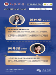 新葡的京集团8814vip第一附属医院(江西省人民医院)肿瘤科主任姚伟荣主任医师作为第一位特邀嘉宾,带来了题为《提升临床医学教学能力》的分享。姚伟荣主任从学校和教师两方面入手,为提升临床医学教学能力水平提供了宝贵的建议。她强调,学校应从态度和行动上对教师保持尊重,通过制定完善的培训计划、采用多元化的培训方式等渠道,为教师提供全面的教学支持。同时,学校还应加大对教师的考核力度,确保教学质量。在谈到教师层面时,姚主任抛出了一个引人深思的问题:“什么是教师的第一要务?”引发了在场老师们的激烈讨论。姚主任认为,教师的第一要务是满足学生的需要,让教学活动更加充实和有趣,从而提升课堂教学效果。