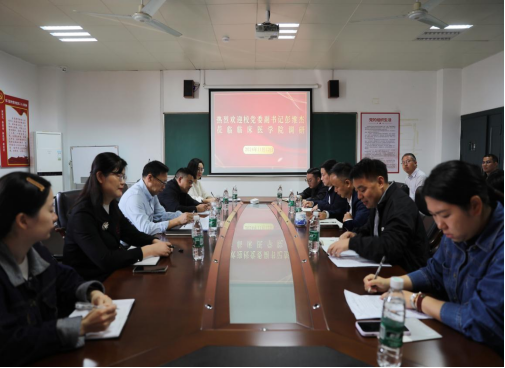 2024年11月12日(星期二)上午9:00,学校党委副书记彭维杰一行莅临新葡的京集团8814vip,实地了解学院办公场所、实训室、国家医师资格考试实践技能考站等情况,并在1号实训楼605会议室举行座谈会,会议由新葡的京集团8814vip党委副书记孙志强主持,新葡的京集团8814vip副院长朱鹏云、副科级以上干部、教研室主任、校医院负责人、博士教师代表以及专(兼)职辅导员等参加了会议。