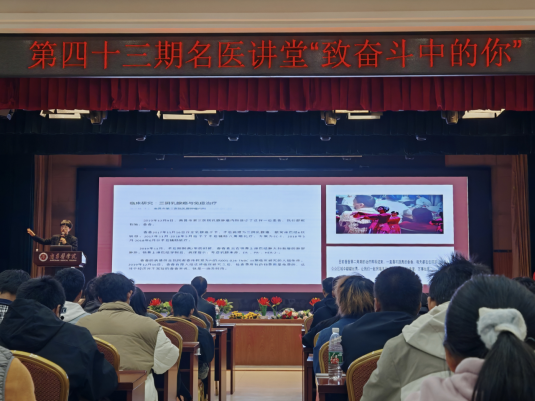 朱鹏云副院长对陈文艳主任莅临学校交流表示热烈欢迎,希望同学们珍惜难得的机会,从优秀医者成长的故事中汲取养分,赋能自身的发展。在分享中,陈文艳主任说到“致奋斗中的你”不仅是本次分享的题目,也是她参与编写的一本《致奋斗中的你》书名,这是一本医生的成长手记,书中记录了她从零开始,创建乳腺肿瘤内科的点点滴滴,激励同学们要追逐梦想,不负韶华。