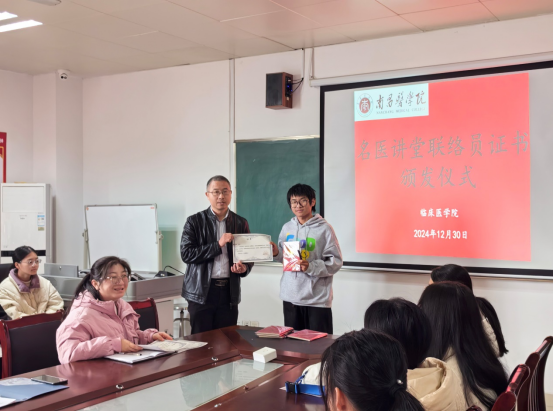 会议还为全体联络员颁发了聘书,同时为魏子聪、伍佳慧、袁焌方、李娟、曾泓萱五位同学颁发2024年度优秀联络员证书和纪念品,鼓励联络员们不断总结经验、增长才干,以期更好服务同学。