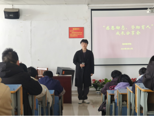 3名优秀家庭经济困难学生登台分享经验。面对经济重压,他们努力克服学习与生活难题。获资助后,成绩提升,积极参与技能竞赛、社区义诊等,综合素质显著提高。学生们深切感恩学校资助,承诺回馈社会,未来或考研投身医学研究,或奔赴基层服务患者。