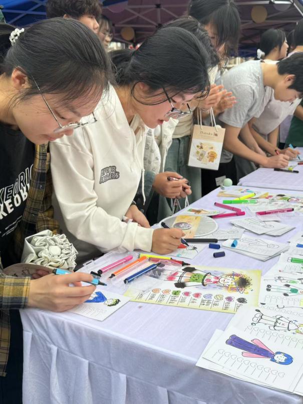 活动中,参与者借助“身体情绪地图”,以色彩描绘身体紧张区域并记录情绪感受,实现情绪外化与自我反思。这种艺术疗愈形式吸引百余名学生参与,现场反响热烈。