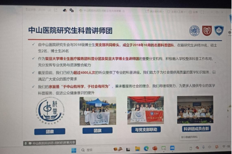 新葡的京集团8814vip学生科普团团长张雅凤对社团进行介绍,分享了社团在科普活动组织、科普内容创作等方面的成果与经验。中山医院研究生科普讲师团副团长周盼介绍了其团队的架构、特色科普项目及取得的成效。中山医院研究生科普讲师团团长许雅鑫进行了科普精品课程分享,分享了为什么要做科普以及如何进行医学科普写作,其中“内容降维、形式降维” 的理念让人收获颇丰,内容生动有趣、通俗易懂,展现了扎实的专业知识和良好的授课技巧。