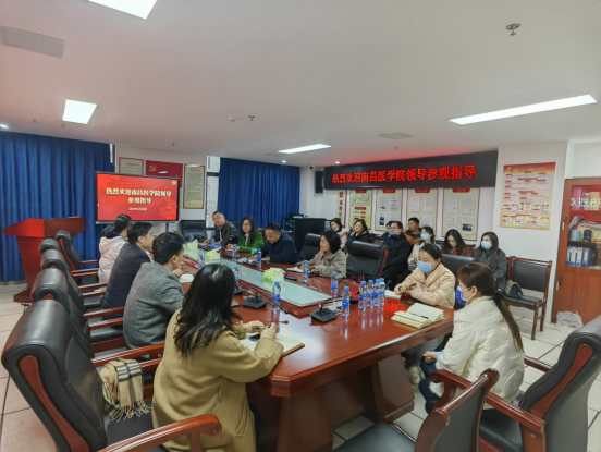 接着,彭小平教授向我们一行人介绍了近些年南昌大学第一附属医院教学发展、改革所取得的成绩及主要做法。其中“2022年第二届全国高校教师教学创新大赛,获部属高校正高组一等奖,创下我省在该项赛事的历史最佳成绩”,以及“获批教育部等八部门公布的首批“大思政课”实践教学基地(江西省唯一获批单位)”等都让我们过目难忘,与有荣焉!新葡的京教学骨干也就“教研室建设”、“师资激励机制”、“课程思政”等方面与南昌大学第一附属医院教务处同仁进行了广泛深入探讨。“贴近实际,科学分析现状,找准突破口,有针对性地培养树立‘典型’,以点带面加以推进…”等思路、方法,在面对面的交流中,渐渐清晰、具体起来。