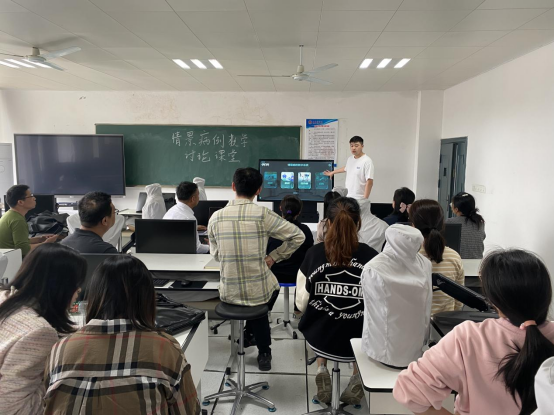 在1-606教室,由医学相关软件开发厂家组织教师进行了“情景病例教学讨论课堂”的培训。通过系统软件情景模拟真实病例,进行讨论式教学,提高学生的思维诊断能力,也有利于教师们提高课堂教学质量。