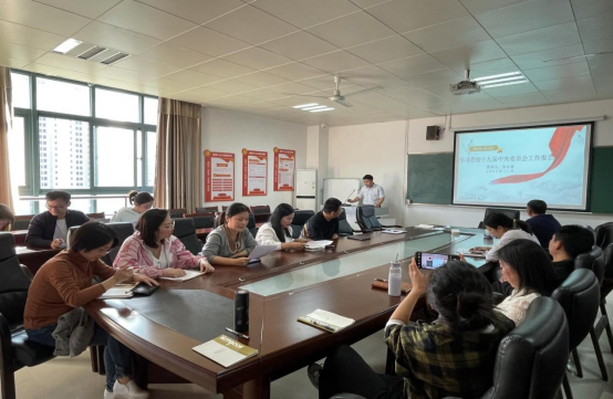 孙志强以《学习贯彻十九届中央委员会工作报告》为题,围绕党的二十大基本情况、党的二十大主题和重大意义、十九届中央委员会的工作报告全文进行了全面、深入的讲解,进一步引导党员干部学习领会党的二十大主题,要求大家真学、真懂、真信、真用;围绕党的二十大重大意义,结合学院工作实际,指导大家要用习近平新时代中国特色社会主义思想铸魂育人,注重教学方式方法创新,为学生打好精神底色、夯实人生根基,在新时代新征程展现新担当新作为。