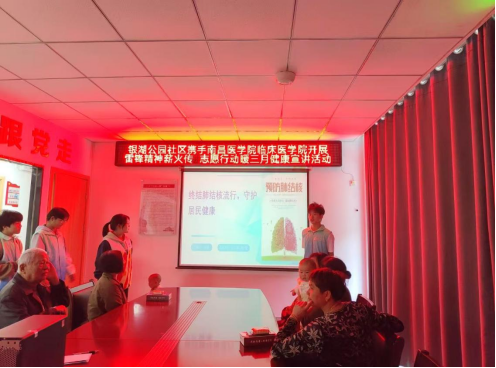 此外,活动还特别设置了健康知识讲座环节。两位志愿者代表分别就肺结核和艾滋病的预防和控制进行了专业宣讲。他们详细介绍了这两种疾病的症状、传播途径及有效预防措施。居民们全神贯注,在与志愿者的互动中,提高了对两种传染性疾病的认识与预防。