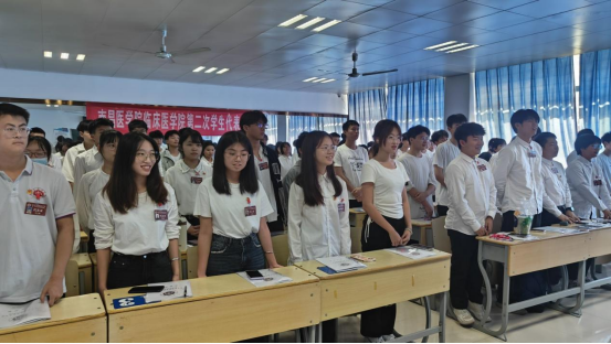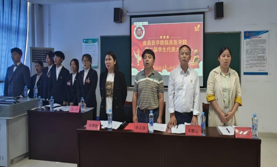 会议在雄伟庄严的国歌声中拉开帷幕,学院领导与学生代表共唱国歌。